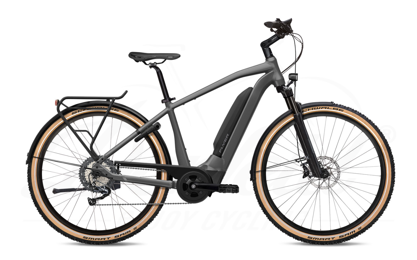 E-Mobilität steht für das Erlebnisgefühl, wenn man auf der Straße, bei einem Abstecher auf Feldwege oder auf bergigen Waldwegen fast vogelfrei unterwegs ist. Der bärenstarke Panasonic GX Power Plus Motor mit 630Wh Akku liefern viel Power für steile Berganstiege oder mühelosem Dahingleiten in leicht hügeliger Landschaft. Die ausgewogene Rahmen-Geometrie der Flyer Upstreet Modelle und die komfortable Sattel-Lenker-Griffe-Ausstattung sorgen für Sicherheit und Fahrkomfort. Das graue 3.12 bietet Ihnen große 29 Zoll Laufräder für schnelle Routen, mit Schwalbe MTB-Bereifung.