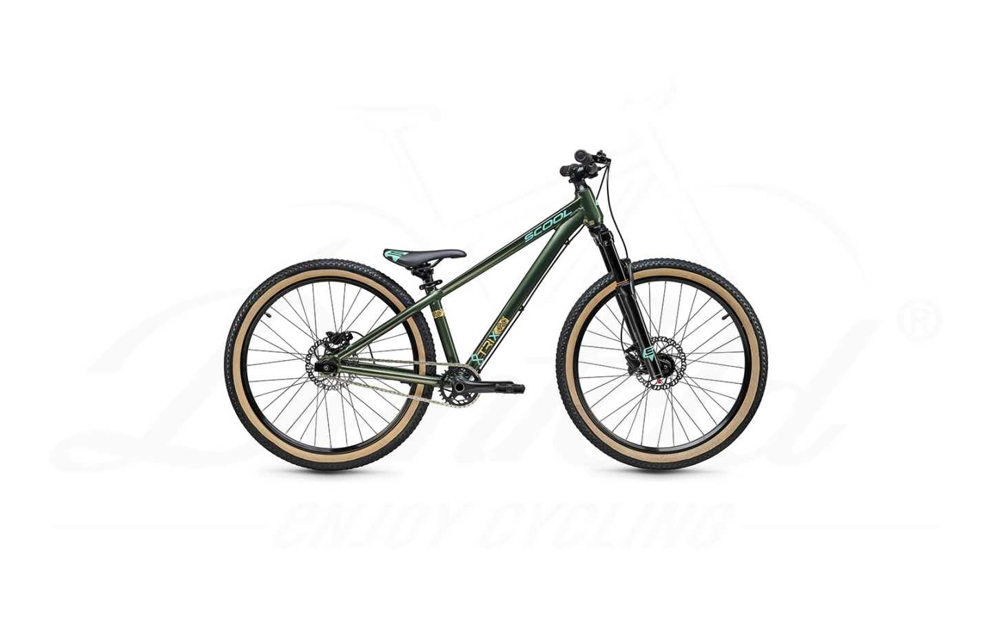 Das TriX Dirt basiert auf einem robusten aber leichten Aluminiumrahmen. Die Farbwahl in Olive ist gelungen, finden Sie nicht auch? Ein cooles Dirtbike mit stylischen Decals. Dazu passend die Skin Wall Reifen.